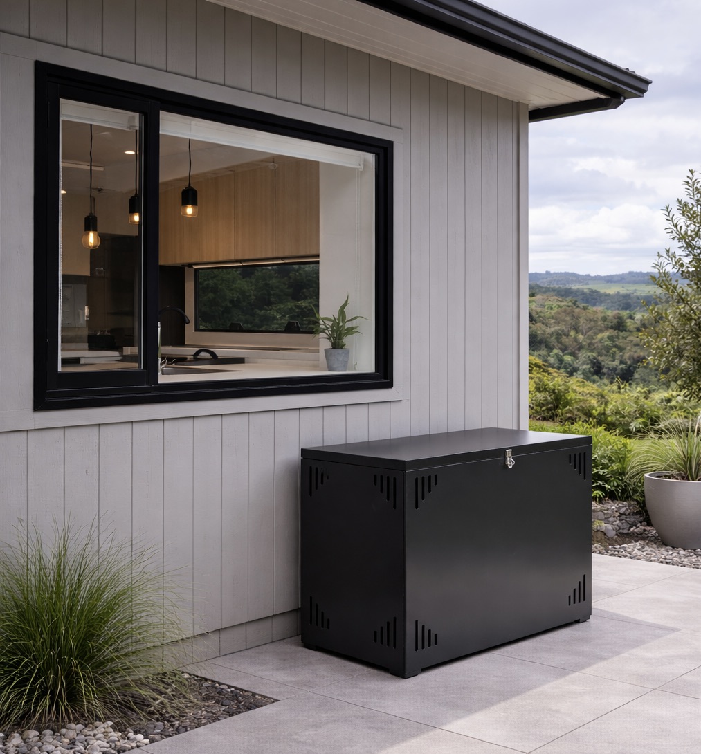 Designed and manufactured in New Zealand, this enclosure discreetly conceals two 9kg LPG bottles, improving street appeal while protecting against weather exposure, corrosion, and theft — all without cluttering your exterior.